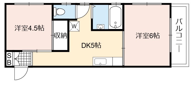 | 間取り詳細 | DK 5畳 、 洋室 6畳 、 洋室 4.5畳 |