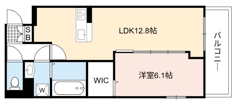 | 間取り詳細 | LDK 12.8畳 、 洋室 6.1畳 |