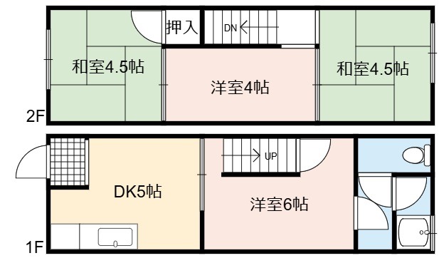 | 間取り詳細 | DK 5畳 、 洋室 6畳 、 和室 4.5畳 、 和室 4.5畳 、 洋室 4畳 |