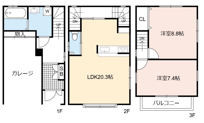 | 間取り詳細 | LDK 20.3畳 、 洋室 7.4畳 、 洋室 6.5畳 |