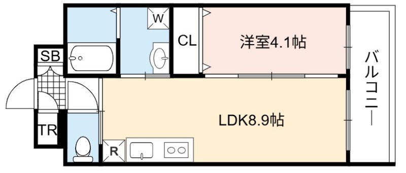 | 間取り詳細 | LDK 8.9畳 、 洋室 4.1畳 |