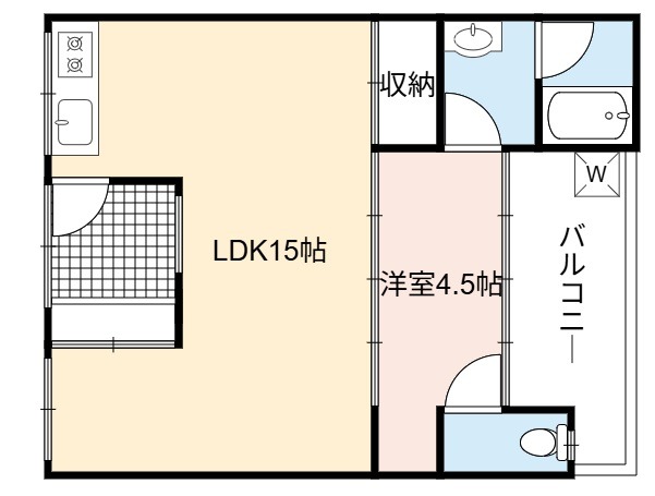 | 間取り詳細 | LDK 15畳 、 洋室 4.5畳 |