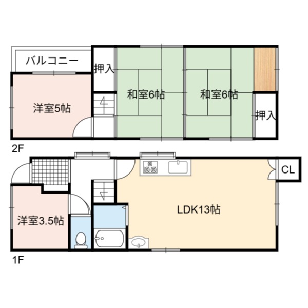 | 間取り詳細 | LDK 13畳 、 和室 6畳 、 和室 6畳 、 洋室 5畳 、 洋室 3.5畳 |