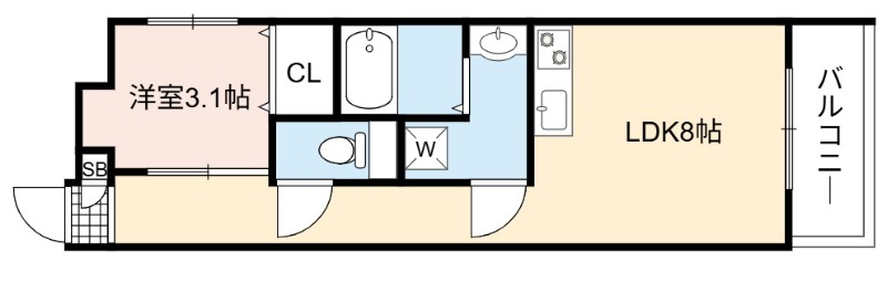 | 間取り詳細 | LDK 8畳 、 洋室 3.1畳 |