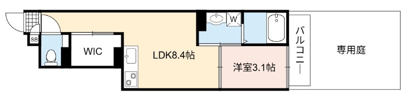 | 間取り詳細 | LDK 8.4畳 、 洋室 3.1畳 |