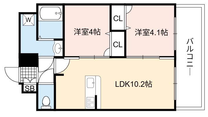 | 間取り詳細 | LDK 10.2畳 、 洋室 4.1畳 、 洋室 4畳 |