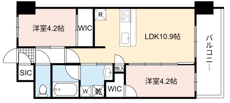 | 間取り詳細 | LDK 10.9畳 、 洋室 4.2畳 、 洋室 4.2畳 |