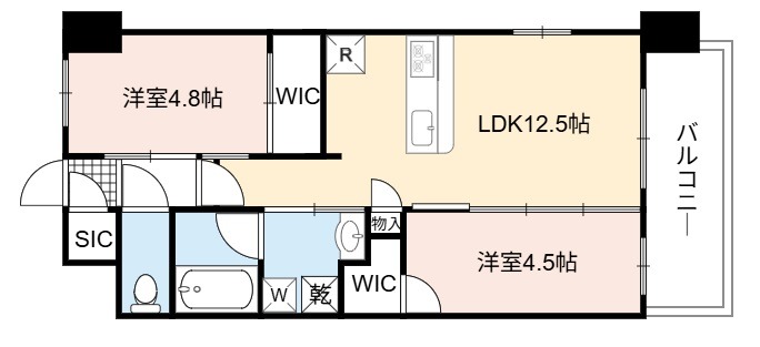| 間取り詳細 | LDK 12.5畳 、 洋室 4.8畳 、 洋室 4.5畳 |