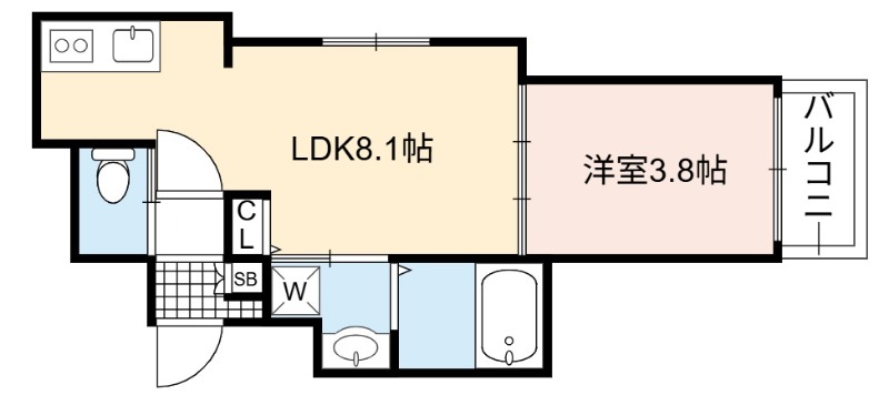 | 間取り詳細 | LDK 8.1畳 、 洋室 3.8畳 |