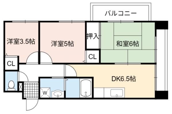 | 間取り詳細 | DK 6.5畳 、 和室 6畳 、 洋室 5畳 、 洋室 3.5畳 |