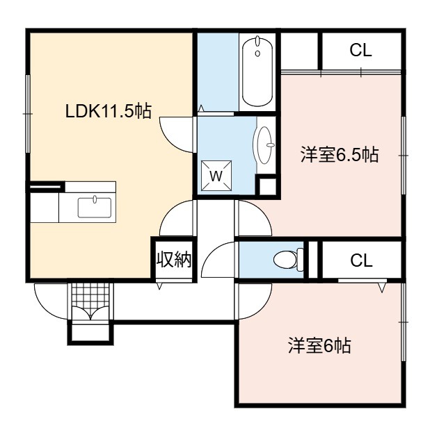 | 間取り詳細 | LDK 11.5畳 、 洋室 6.5畳 、 洋室 6畳 |