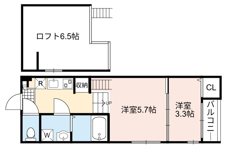 | 間取り詳細 | 洋室 5.7畳 、 洋室 3.3畳 |