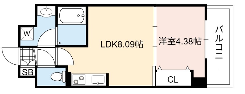 | 間取り詳細 | LDK 8.09畳 、 洋室 4.38畳 |