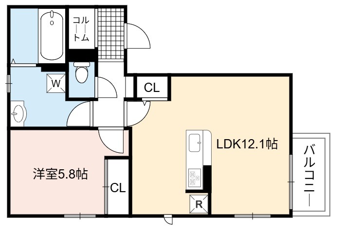 | 間取り詳細 | LDK 12.1畳 、 洋室 5.8畳 |