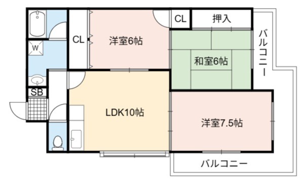 | 間取り詳細 | LDK 10畳 、 洋室 7.5畳 、 洋室 6畳 、 和室 6畳 |