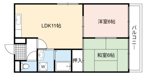 | 間取り詳細 | LDK 11畳 、 洋室 6畳 、 和室 6畳 |