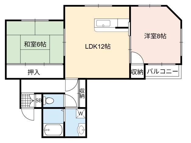 | 間取り詳細 | DK 12畳 、 洋室 8畳 、 和室 6畳 |