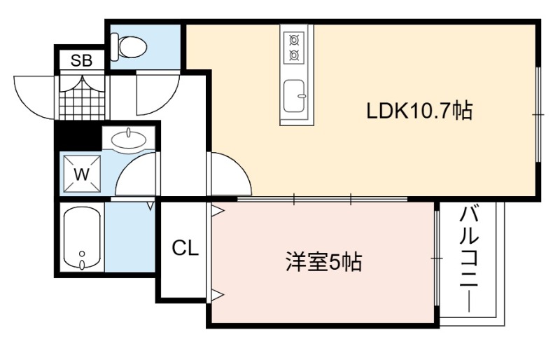 | 間取り詳細 | LDK 10.7畳 、 洋室 5畳 |