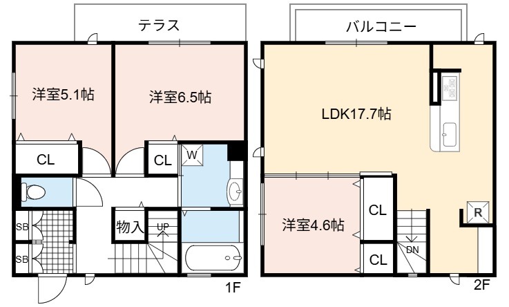 | 間取り詳細 | LDK 17.7畳 、 洋室 6.5畳 、 洋室 5.1畳 、 洋室 4.6畳 |