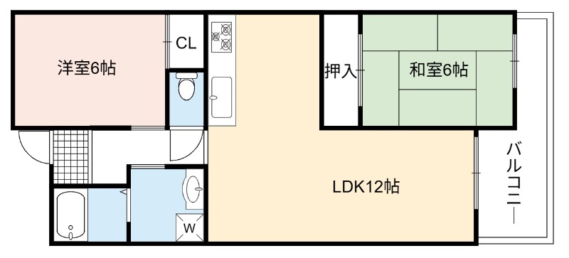 | 間取り詳細 | LDK 12畳 、 洋室 6畳 、 和室 6畳 |