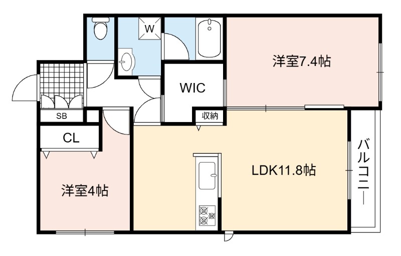 | 間取り詳細 | LDK 11.8畳 、 洋室 7.4畳 、 洋室 5.2畳 |