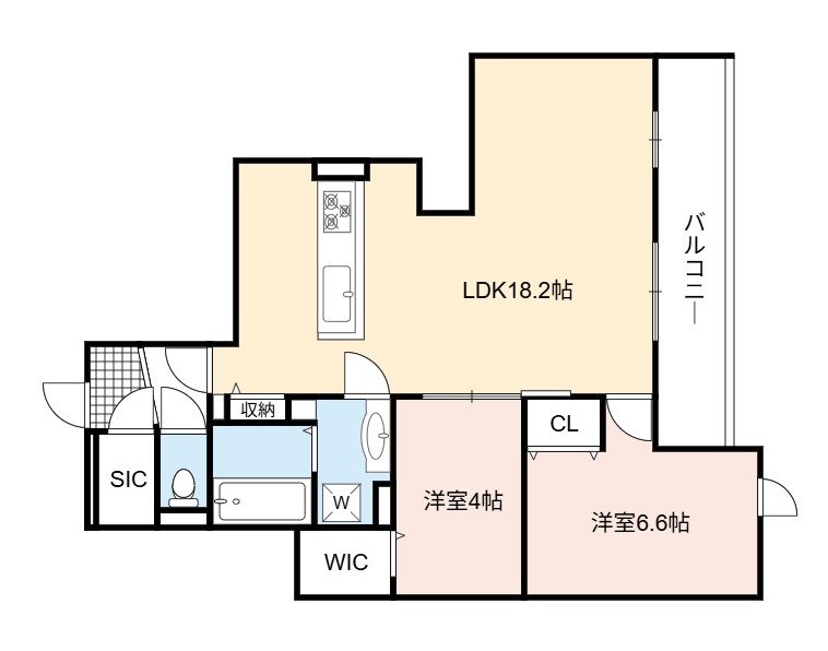 | 間取り詳細 | LDK 18.2畳 、 洋室 6.6畳 、 洋室 4畳 |