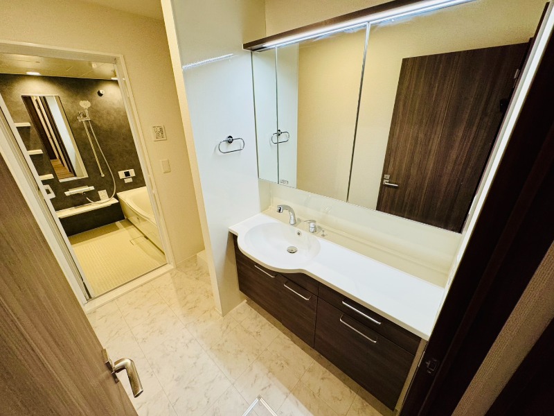 | 設備 | ガス(都市ガス)、インターホン(TVモニター付き)、防犯カメラ、オートロック、宅配ボックス、専用ゴミ置き場(24Hゴミ出し可)、駐輪場、バイク置き場、日当り良好、眺望良好、全室向き(南向き)、南向き部屋数(2室)、南向きリビング、通風良好、フローリング、全居室フローリング、照明器具、ベランダ・バルコニー、クローゼット、クローゼット数(3)、全居室収納、物置、下駄箱、バス・トイレ別(別室)、シャワー、追い焚き、浴室乾燥機、オートバス、脱衣所、温水洗浄便座、洗面所独立、シャンプードレッサー、三面鏡付き洗面化粧台、洗面所にドア、洗濯機置き場(室内)、コンロ設置済、コンロ口数(3)、コンロ種類(都市ガス)、グリル、ガラストップコンロ、システムキッチン、カウンターキッチン、対面キッチン、エアコン、24H換気システム、BS、CS、CATV、有線、光ファイバー、CATVインターネット、LAN、ISDN、インターネット使用料無料 | ||