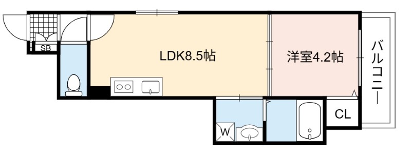 | 間取り詳細 | LDK 8.5畳 、 洋室 4.2畳 |
