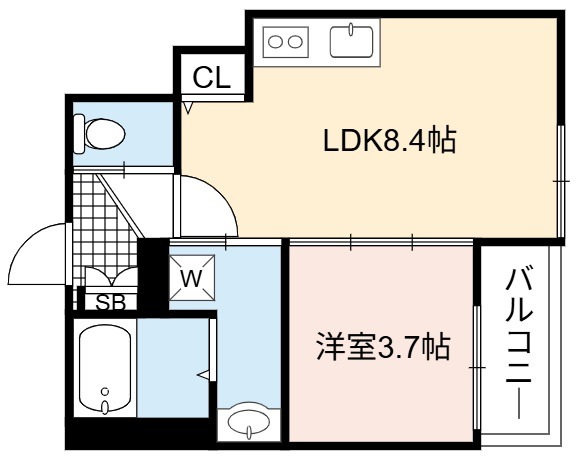 | 間取り詳細 | LDK 8.4畳 、 洋室 3.7畳 |