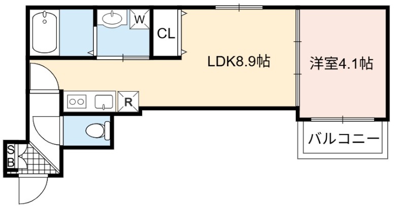 | 間取り詳細 | LDK 8.9畳 、 洋室 4.1畳 |