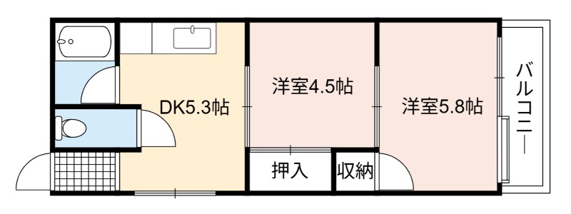 | 間取り詳細 | 洋室 5.8畳 、 洋室 4.5畳 |