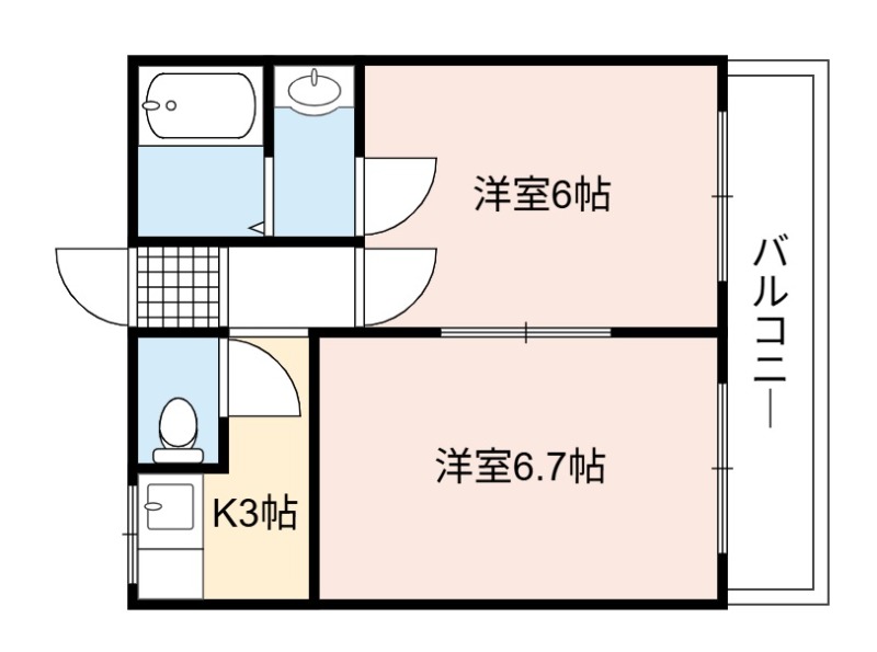 | 間取り詳細 | LDK 6.7畳 、 洋室 6畳 |