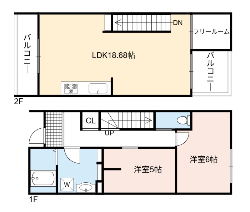 | 間取り詳細 | LDK 18.68畳 、 洋室 6.3畳 、 洋室 5畳 |