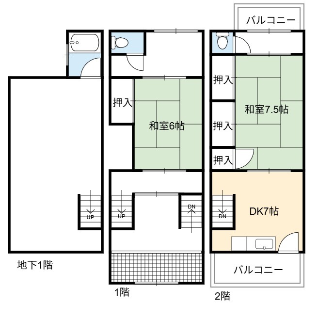 | 間取り詳細 | DK 7畳 、 和室 7.5畳 、 和室 6畳 、 洋室 6畳 |