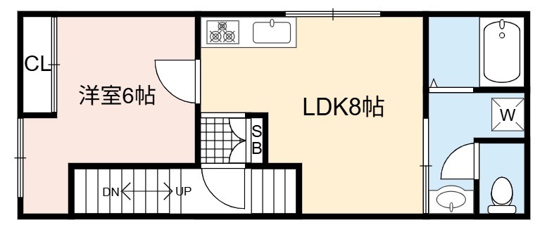| 間取り詳細 | LDK 8畳 、 洋室 6畳 |