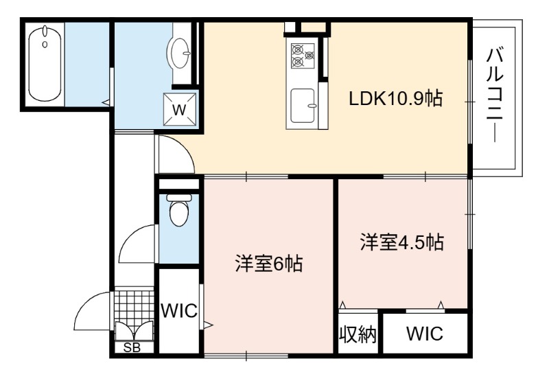 | 間取り詳細 | LDK 10.9畳 、 洋室 6畳 、 洋室 4.5畳 |