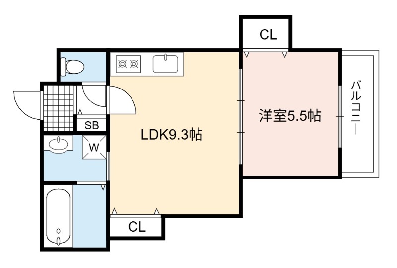 | 間取り詳細 | LDK 9.3畳 、 洋室 5.5畳 |
