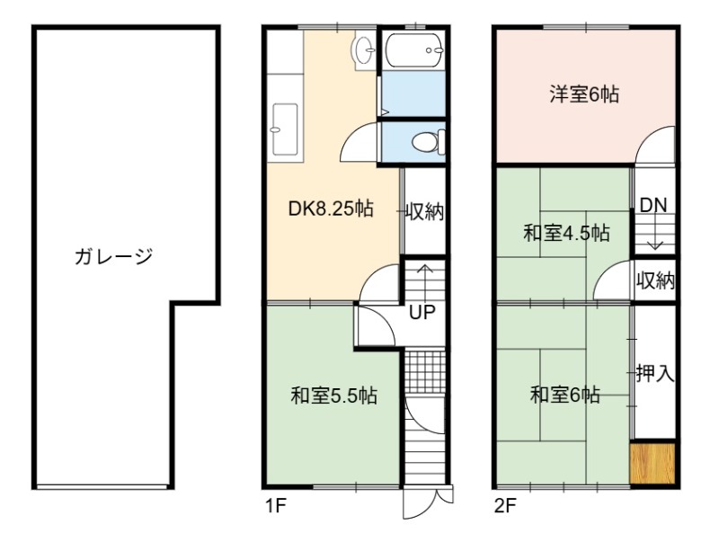 | 間取り詳細 | DK 8.25畳 、 洋室 6畳 、 和室 6畳 、 和室 5.5畳 、 和室 4.5畳 |