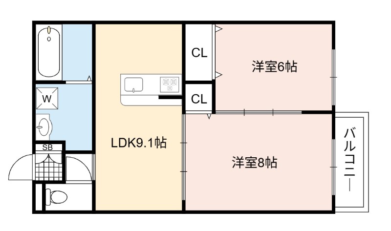 | 間取り詳細 | LDK 9.1畳 、 洋室 8畳 、 洋室 6畳 |