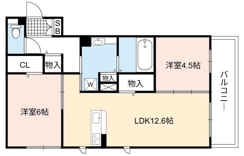 | 間取り詳細 | LDK 12.6畳 、 洋室 6畳 、 洋室 4.5畳 |