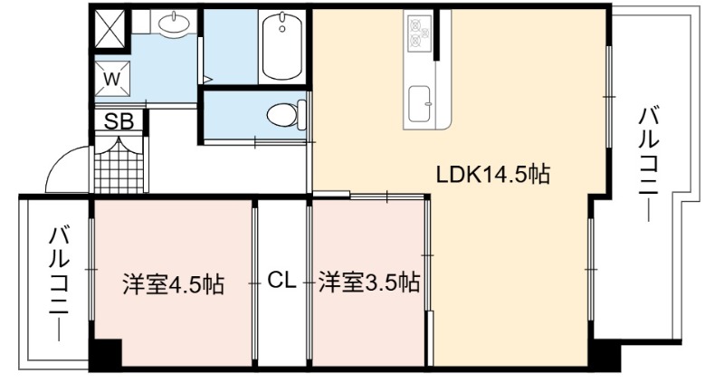 | 間取り詳細 | LDK 14.5畳 、 洋室 4.5畳 、 洋室 3.5畳 |