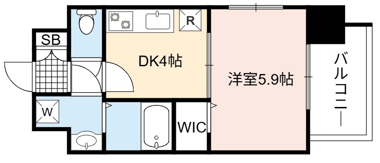 | 間取り詳細 | DK 4畳 、 洋室 5.9畳 |