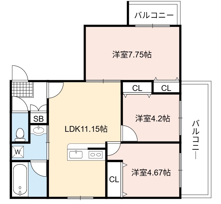 洋室 7.75畳 洋室 4.67畳 洋室 4.2畳 |