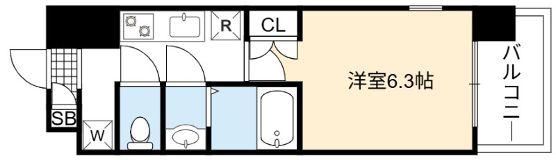 | 1K | 洋室 6.3畳 | 21.69㎡ |