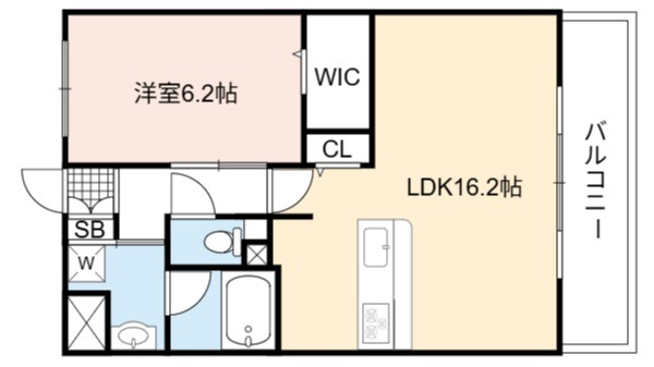 | 間取り詳細 | LDK 16.2畳 、 洋室 6.2畳 |