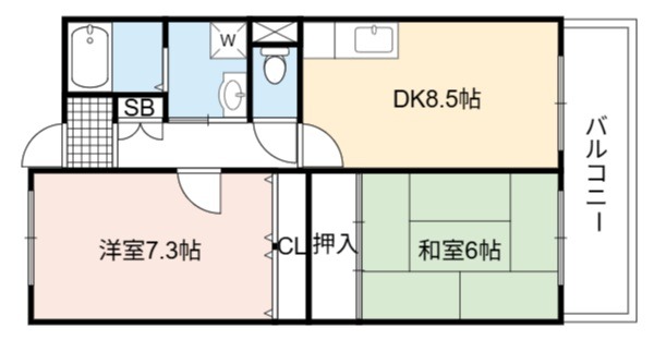 | 間取り詳細 | DK 8.5畳 、 洋室 7.3畳 、 和室 6畳 |