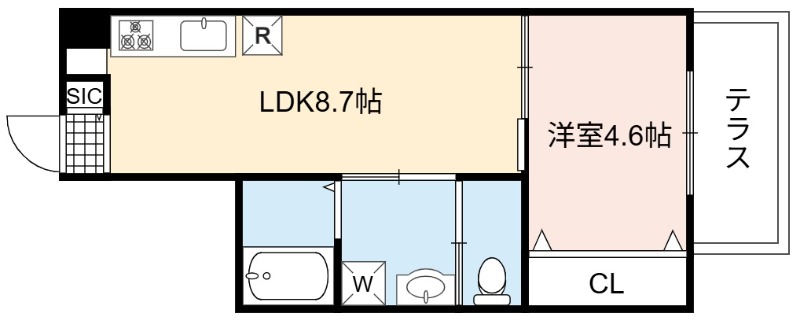 | 間取り詳細 | LDK 8.7畳 、 洋室 4.6畳 |
