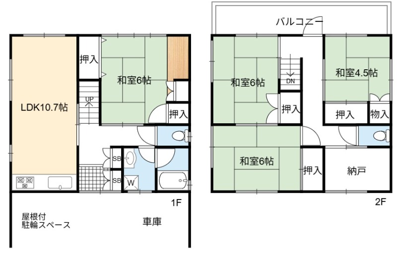 | 間取り詳細 | LDK 10.7畳 、 和室 6畳 、 和室 6畳 、 和室 6畳 、 和室 4.5畳 |