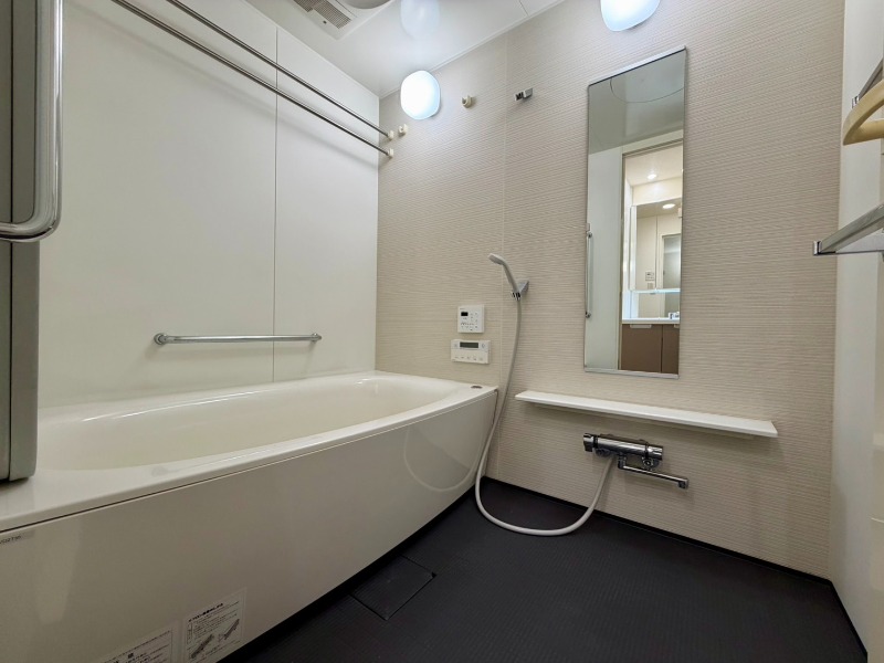 | 設備 | ガス(都市ガス)、インターホン(TVモニター付き)、防犯カメラ、オートロック、宅配ボックス、専用ゴミ置き場(24Hゴミ出し可)、駐輪場、バイク置き場、日当り良好、眺望良好、角部屋、通風良好、フローリング、全居室フローリング、照明器具、ベランダ・バルコニー、クローゼット、クローゼット数(3)、全居室収納、物置、下駄箱、バス・トイレ別(別室)、シャワー、追い焚き、浴室乾燥機、オートバス、脱衣所、温水洗浄便座、洗面所独立、シャンプードレッサー、三面鏡付き洗面化粧台、洗面所にドア、洗濯機置き場(室内)、コンロ設置済、コンロ口数(3)、コンロ種類(都市ガス)、グリル、ガラストップコンロ、食器洗乾燥機、システムキッチン、エアコン、床暖房、24H換気システム、BS、CS、CATV、有線、光ファイバー、CATVインターネット、LAN、ISDN | ||