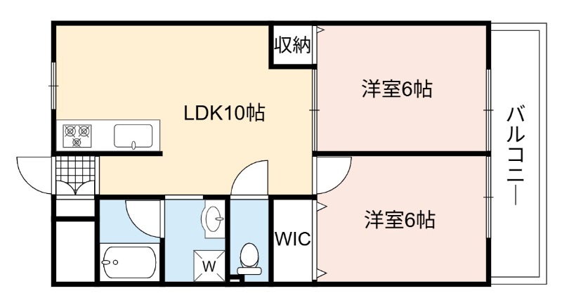 | 間取り詳細 | LDK 10畳 、 洋室 6畳 、 洋室 6畳 |